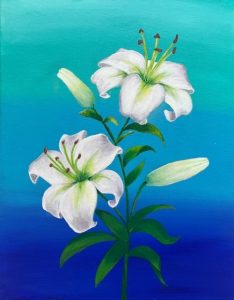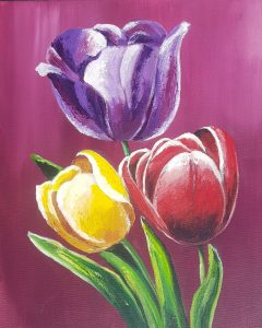 Bloemen laten een stukje schoonheid zien.Ze zijn er, ze groeien, ze bloeien.Ze bewegen mee met het ritme van de natuurZo mogen wij ook zijn zoals we zijn,ieder op zijn/haar eigen unieke manier. Stralen als een bloem. Witte klaproos / Acryl————Kleurige tulpen / Acryl / Paletmes————Witte lelie / Acryl———–Tulpendans / Acryl————Klaproos / Waterverf——————Non-perfection / Acryl